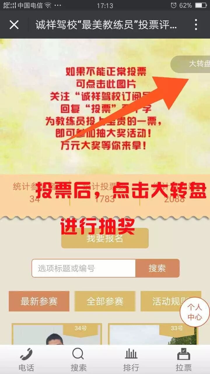 2、投完票后,点击页面右上角“大转盘”三个字即可进入抽奖页面进行抽奖!