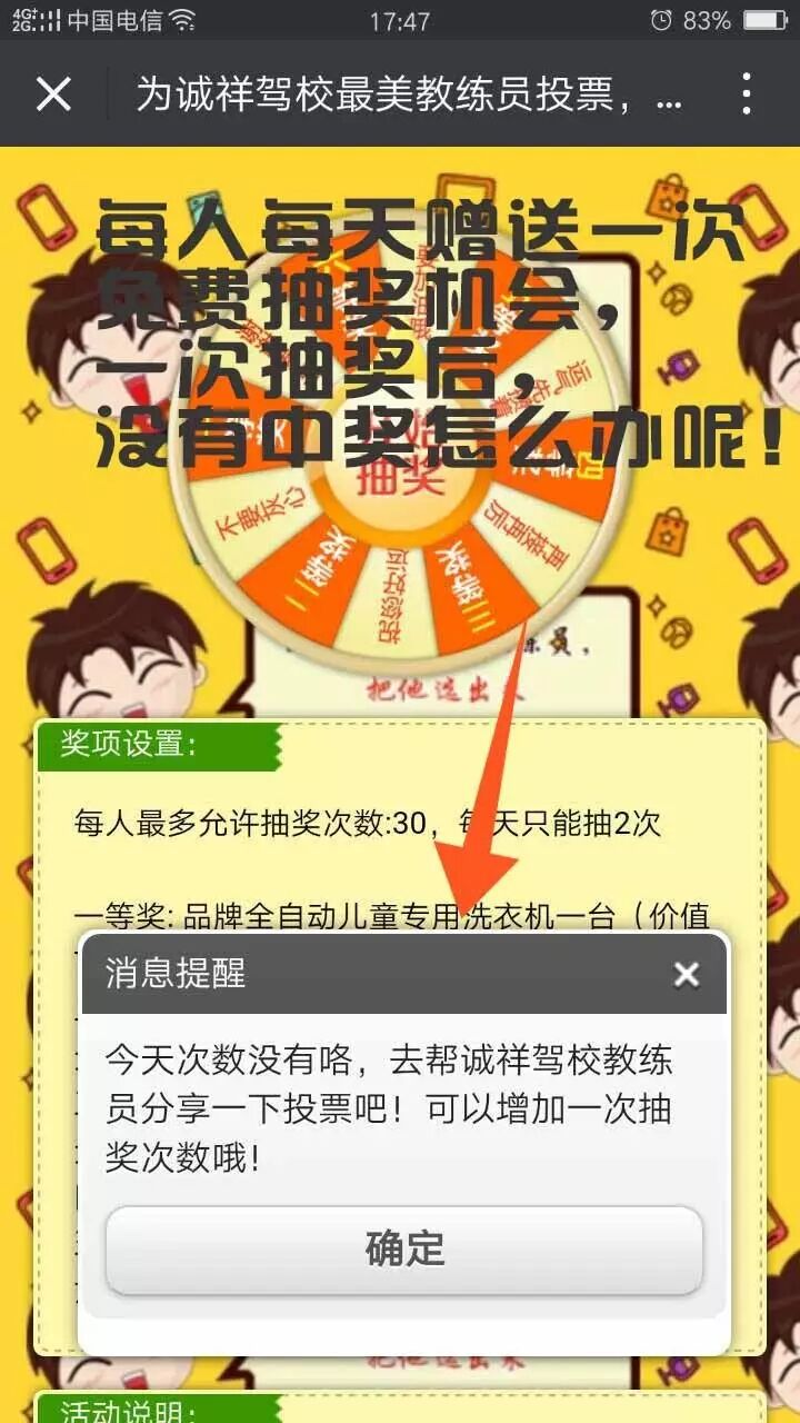 1、每天为支持的“最美的教练员”投票,即可获得免费抽奖机会